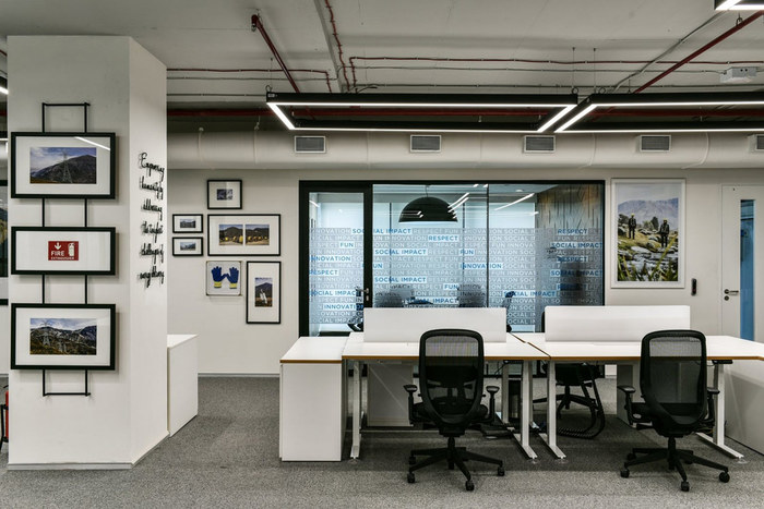 2、借景。在辦公室裝修采用和室外某些相同的元素,使辦公室裝修外的景色渾然一體,空間因而得以視覺上的延伸;或在辦公室裝修掛一幅面積較大的山水畫,從而產生無限空間的感覺。