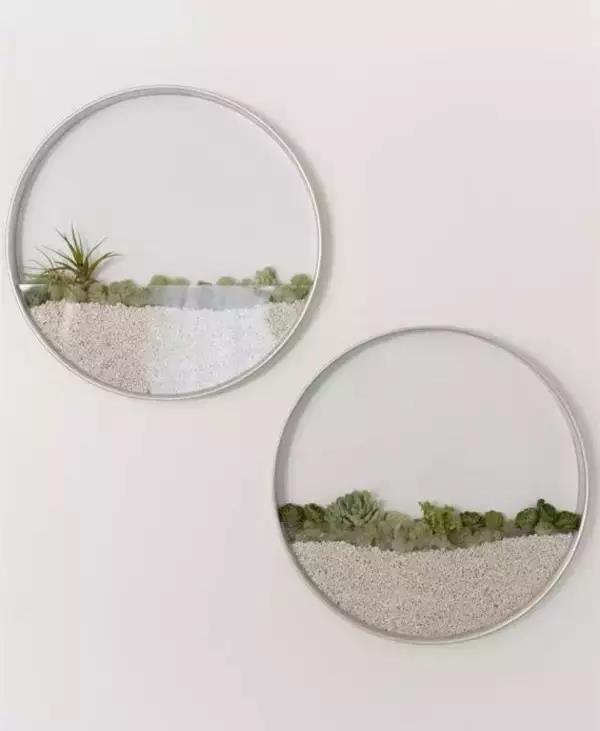 小苔蘚和小多肉 用這樣一個圓形器皿裝沙子 簡潔利索,也很干凈