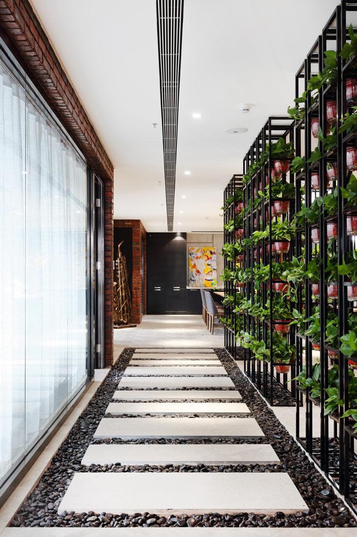 過道設計師將其設計成漫步區,漫步區與綠植區結合在一起,為空間打造了一處觀賞區,讓員工在這里放松心情、忘卻煩惱。