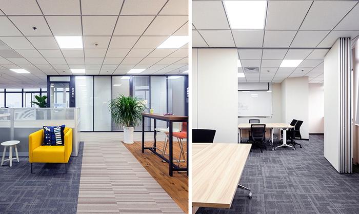 在辦公室進行頂面裝修時,因大多辦公室都是租在一些大廈的內部,出租方一般會對其裝修有一定的要求。在辦公室裝修設計時,其隔斷劃分時一定要考慮到頂部的煙感、中央空調進出風口,以及固定光源、噴淋等基礎的配套設施。