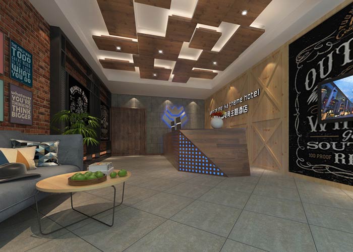 電競酒店前臺設計:前臺的設計類似于咖啡廳設計,之所以這樣設計,是設計師希望本次酒店設計區別于以往的設計,這樣做是為了與酒店的屬性相吻合,打造屬于自己的風格。