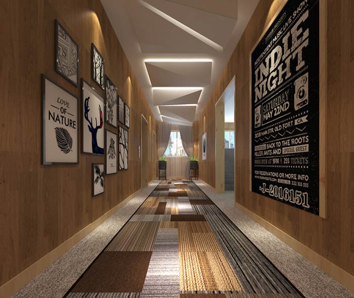 電競酒店過道設計:過道融入了家的元素,目的就是為了消除酒店的元素,讓消費者在這里感受到仿佛進入到家里一樣,在這里玩的開心、玩的舒心。