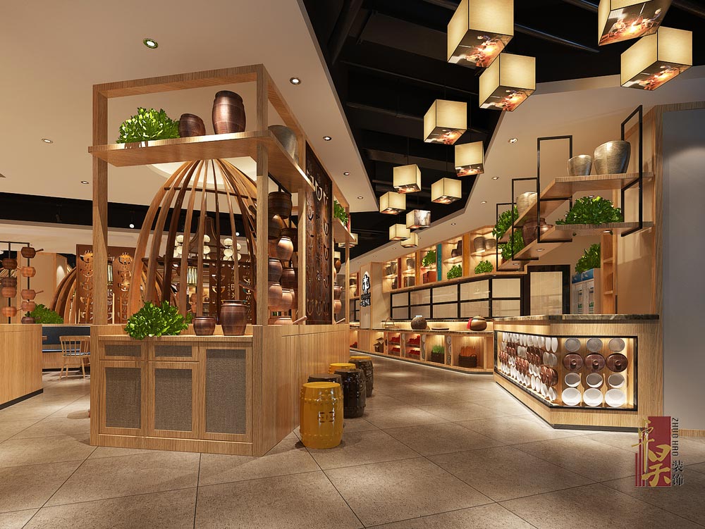 長沙餐飲門店裝修設計需具有充分的構想及合理性,其中店堂裝潢設計的優劣,廳堂的高度是否合理,燈光照明是否合理,店堂面積的大小,都直接影響飯店成功經營的因素。因此作為飯店的前廳都應寬敞、明亮。其高度應不低于3米。