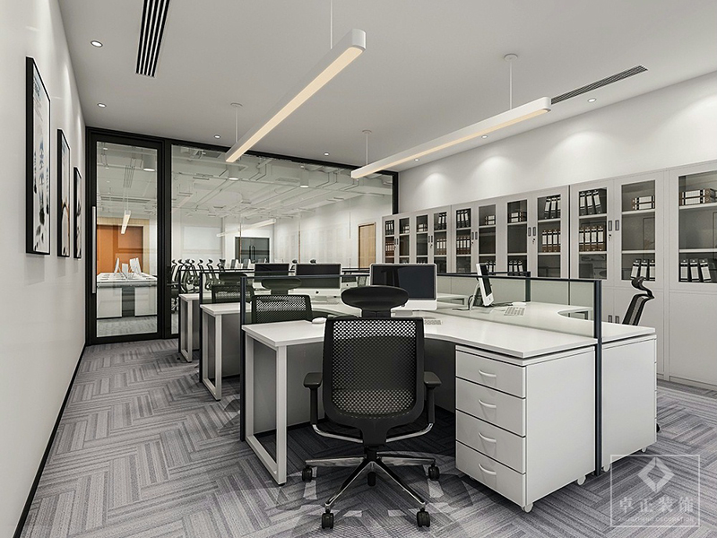 本次辦公室裝修設計以灰白色調為主,簡約現代的風格,結合企業需求,分為開放式辦公室、檔案室、生活區等多個空間,滿足公司不同功能需求;;